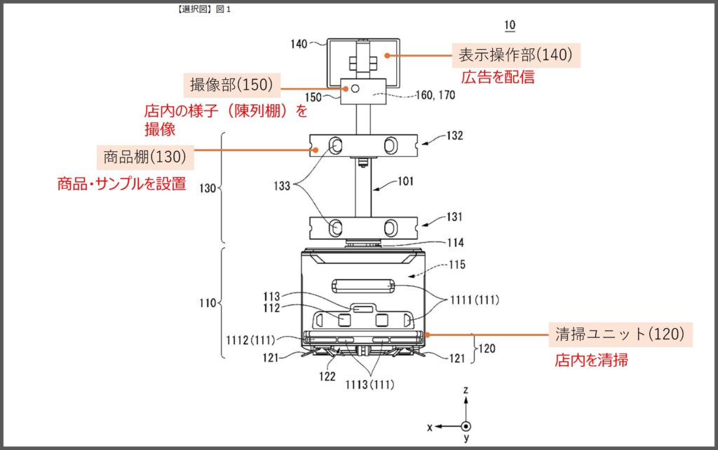 この、清掃ロボットに関する特許が確認できたので紹介します(出願人は株式会社ファミリーマート)。