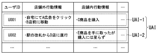 行動のデータは、例えば、店舗(コンビニ)の外における店舗外行動のデータと、店舗内における店舗内行動のデータを含みます。